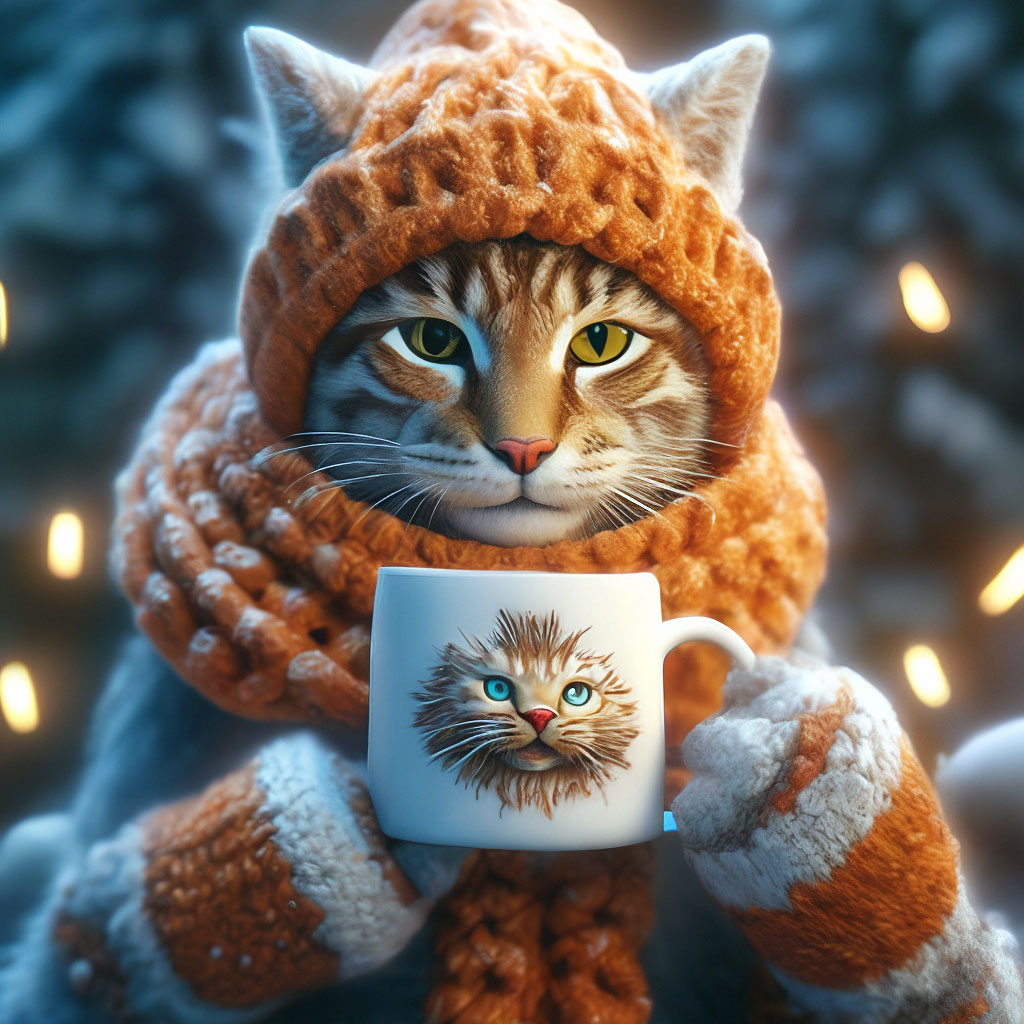 Кот ... котик в свитере, шапочке и ." - картинка создана в Шедевруме